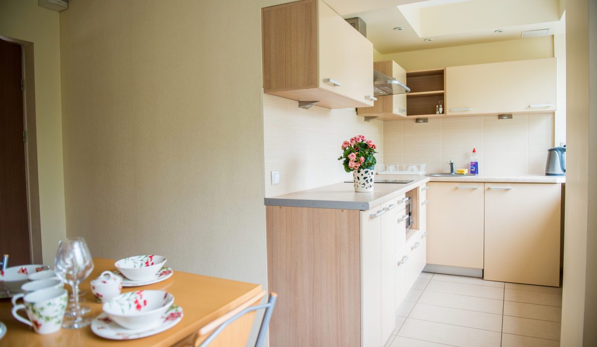Į kainą įeina apartamentų tvarkymas vieną kartą per savaitę. Numerio plotas 45 m2.