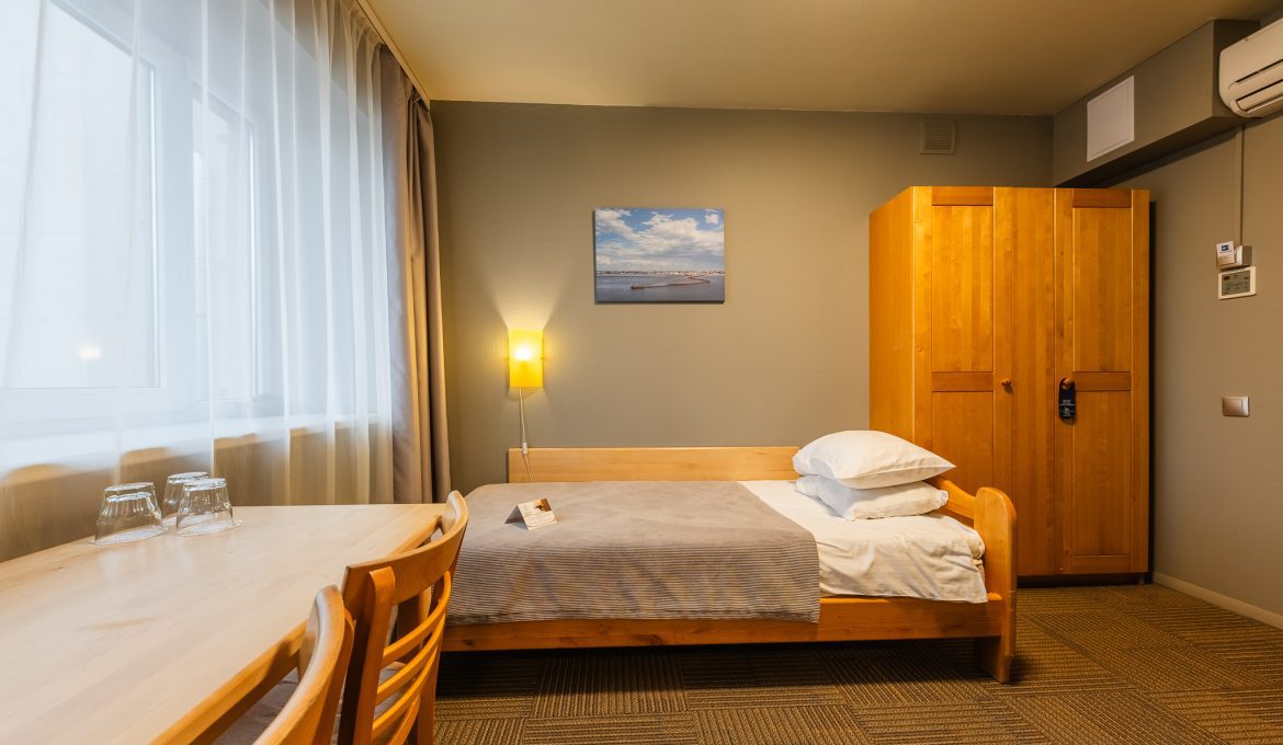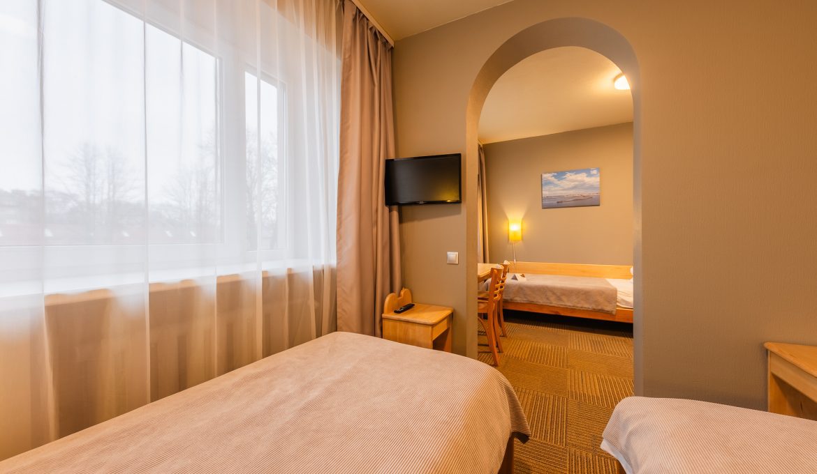 Klasisks trīsvietīgs numurs. Numura platība ~20 m2. Ērtības numurā: Divistabu numurs, trīs vienguļamās gultas (90×200 cm.), rakstāmgalds ar krēslu, kondicionieris, elektriskā tējkanna, TV, telefons, bezvadu USB uzlādes ierīce, WI-FI, drēbju skapis, vannas istaba ar dušu un WC, fēns.